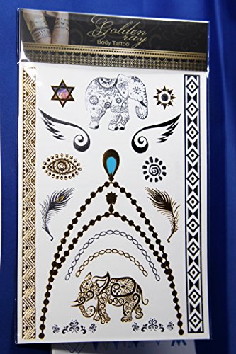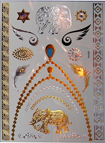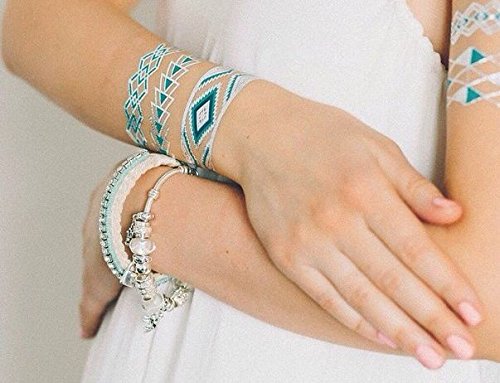 GORGEOUS PLAY OF COLORS: Beautiful and shimmering designs in turquoise, blue, silver and gold will attract a lot of attention. Multifaceted ornaments and rich colors - are the hallmarks of these gold transfer tattoos.