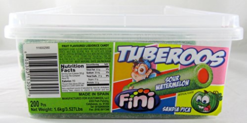 -. Title : Tuberoos Green Color Red Fondant Filled Sour Licorice Sticks, Watermelon Artificially Flavor. - 200 Pieces Tub