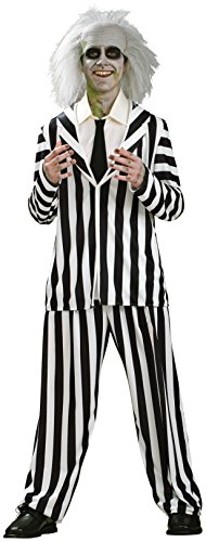 -. Binding : Apparel -. Brand : Rubie's -. Color : Multi -. Department : mens -. Feature : Officially licensed beetle juice costume / Includes black and white striped pants, jacket, and dickie / Teen size fits a 34 to 36-inch jacket size / Make-up and wig sold separately / Rubie's offers licensed costumes and accessories in sizes and styles for the entire family -. Genre : TV/Movie Characters -. IsAdultProduct : 0 -. Label : Rubies Costumes - Apparel -. Manufacturer : Rubies Costumes - Apparel -. PackageQuantity : 1 -. ProductGroup : Apparel -. ProductTypeName : ADULT_COSTUME -. Publisher : Rubies Costumes - Apparel -. Studio : Rubies Costumes - Apparel -. Title : Rubie's Costume Co Men's Beetlejuice Teen Costume