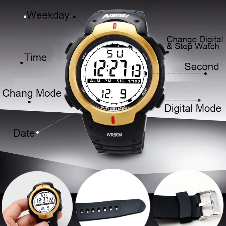 Feature:Stop Watch,Back Light,LED display,Luminous,Auto Date,Chronograph,Complete Calendar,Diver,Water Resistant,Alarm