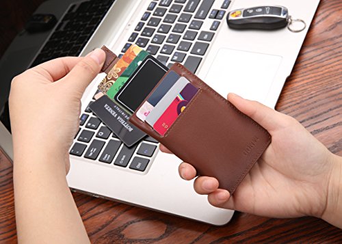 Binding : Apparel Product Description The simplified designed wallet allows you to hold your cards and money in a more comfortable way. It is an ideal card and money organizer. 3 front slots are reserved for your favorite cards and 1 back slot is for money. In the central compartment, there is a pull tab which helps you easily get your cards out. This slim wallet or card case is suitable for keeping your credit cards, ID cards, business cards and some cash. ATTN: Since it is a brand new product, the slots will be a little bit tight in the beginning. It gets more comfortable after 2-3 days using.