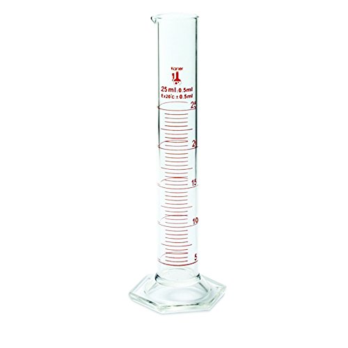 25ml, Graduated Cylinder, Borosilicate 3.3 Glass, Single Metric Scale, Karter Scientific