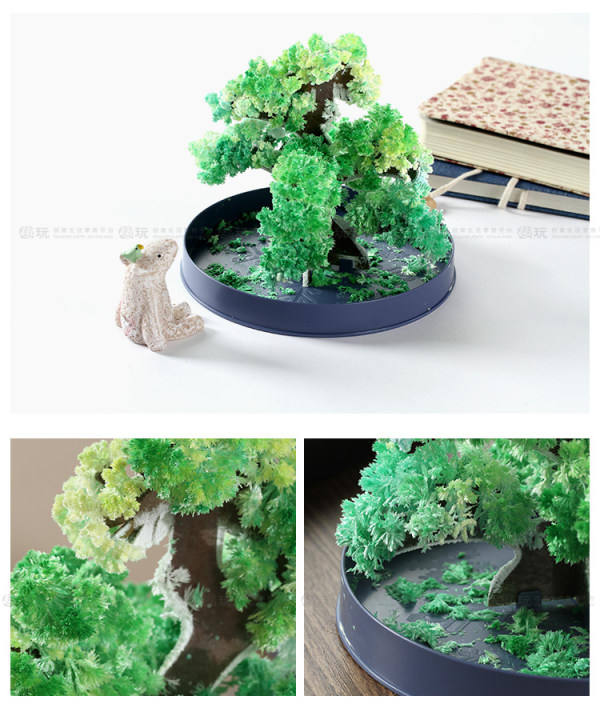 1. Put the paper tree on the plate first, the magic water poured on the tree, the paper tree will germinate in 30 minutes, an hour after the tree began to grow flowers, and 6-12 hours after the tree flowers will be Completely bloom.