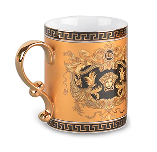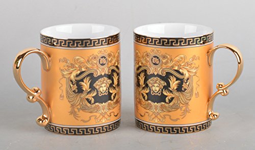 -. Feature : High Quality Porcelain, 24K Gold-plated / Volume: 13 Oz, Dimensions: 4"H x 3"W / Offer is for 1 tea cup, buy two to get a free gift box! / Greek Pattern, Medusa Ornament