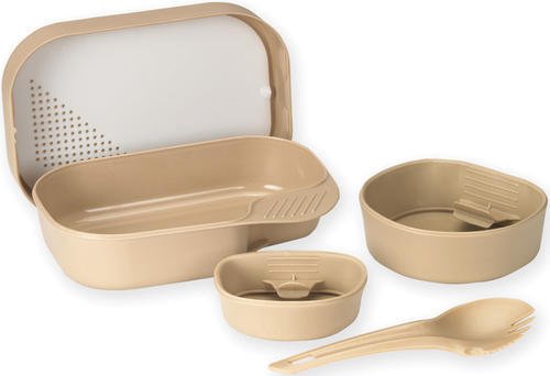 The Original. Contains everything you need, while its compact, practical design means that it fits perfectly in a backpack pocket. Includes a plate with lid, fold-a-cup big, fold-a-cup, cutting-board, and Spork