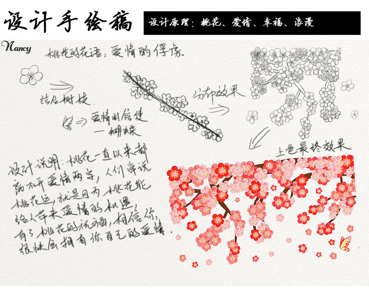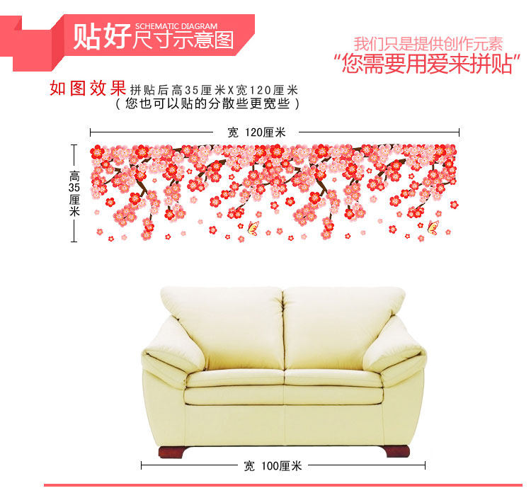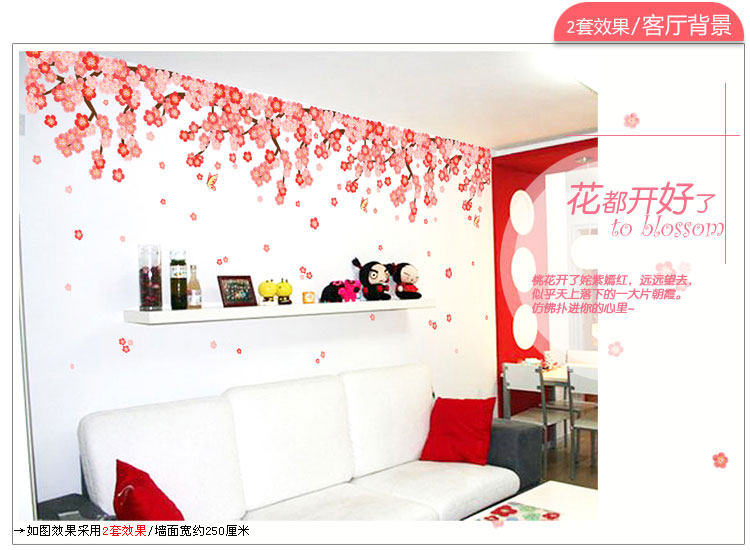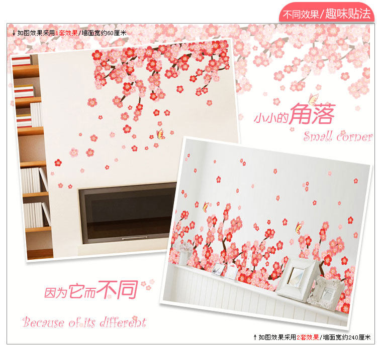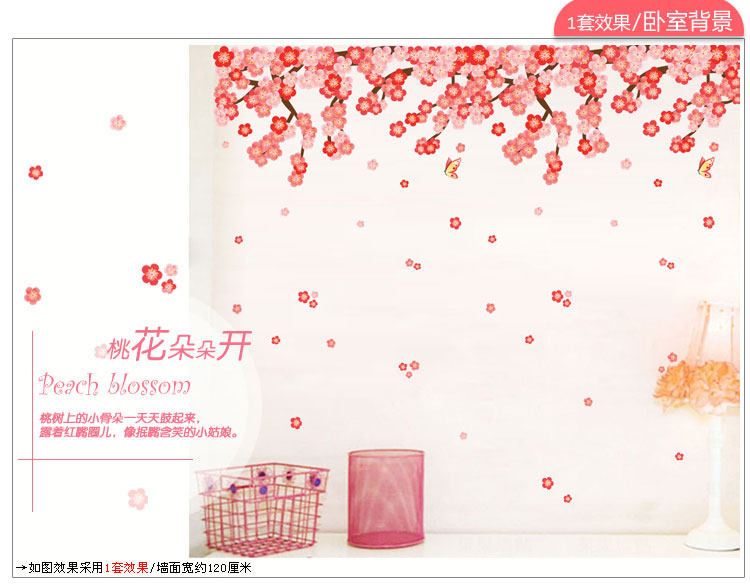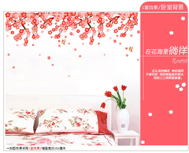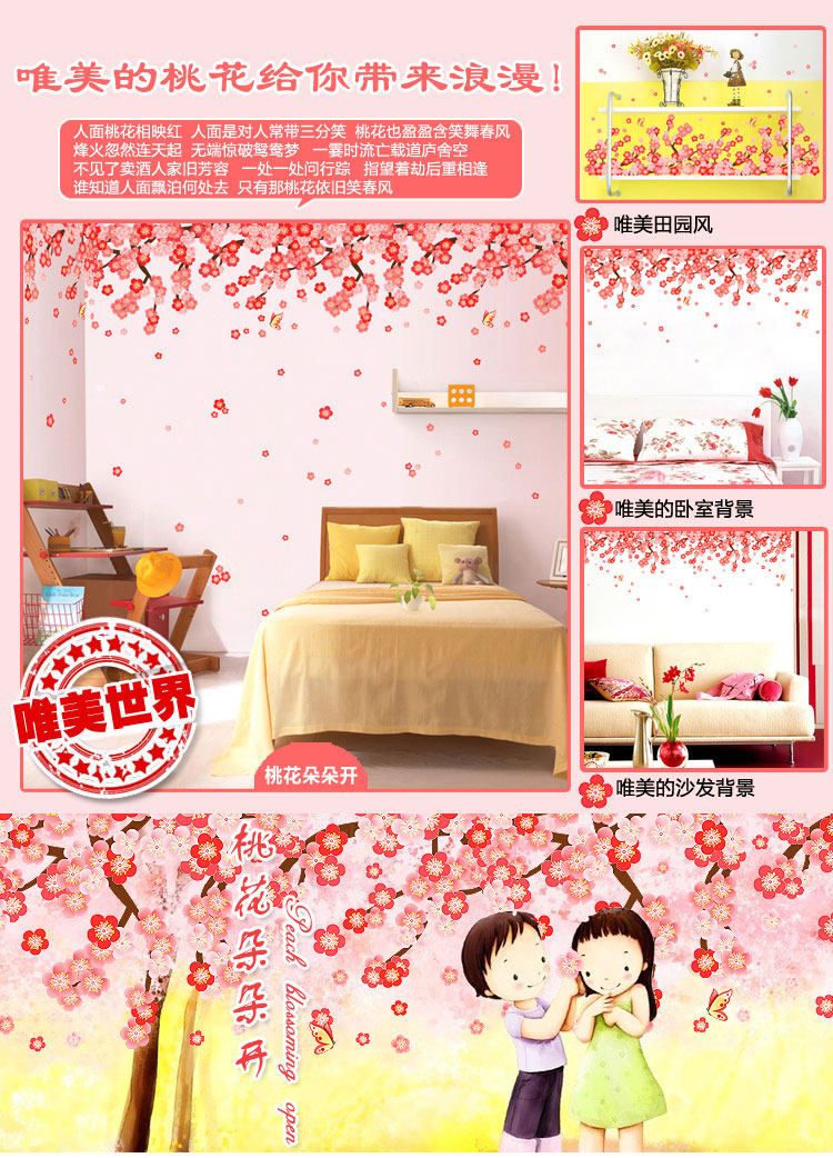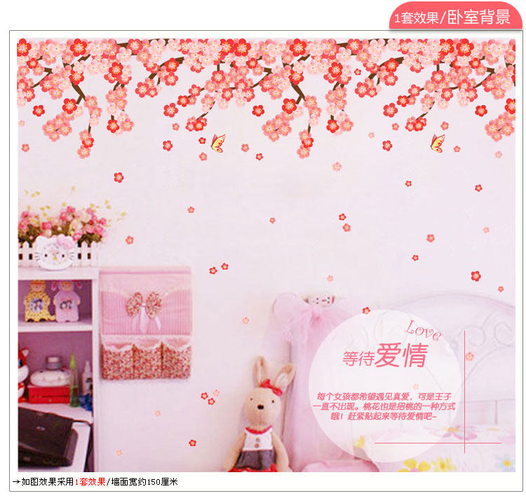 墙贴纸贴画温馨卧室婚房墙壁装饰天花板房顶腰线踢脚线贴花桃花朵