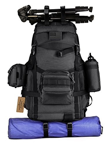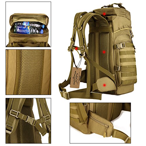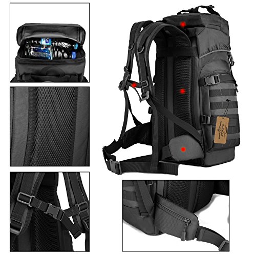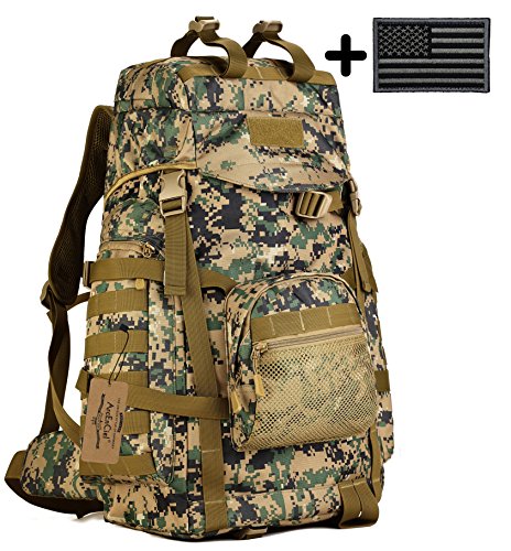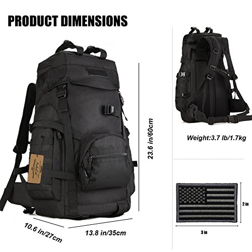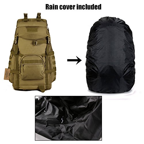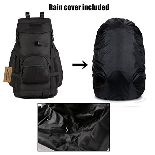 -. Title : ArcEnCiel 60L Outdoor Military Tactical Hiking Backpack with Patch - Rain Cover Included
