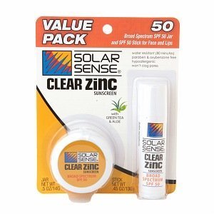 SOLAR SENSE VALUE PACK SPF 50 , .5 OZ JAR AND 45 OZ STICK Clear Zinc Face Jar & Sport Stick Sunscreen SPF 50, Value Pack, Green Tea & Aloe Brand : CCA Item model num : CCA467761 MPN(PartNumber) : CCA467761 EAN : 0018515179432