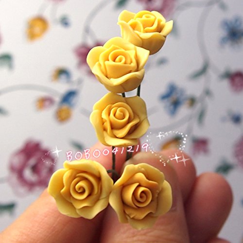 -. Title : Bobominiworld 5 Pieces Of Clay Rose Flowers Dollhouse Miniatures Decoration 1:12 Scale Length 6cm Yellow
