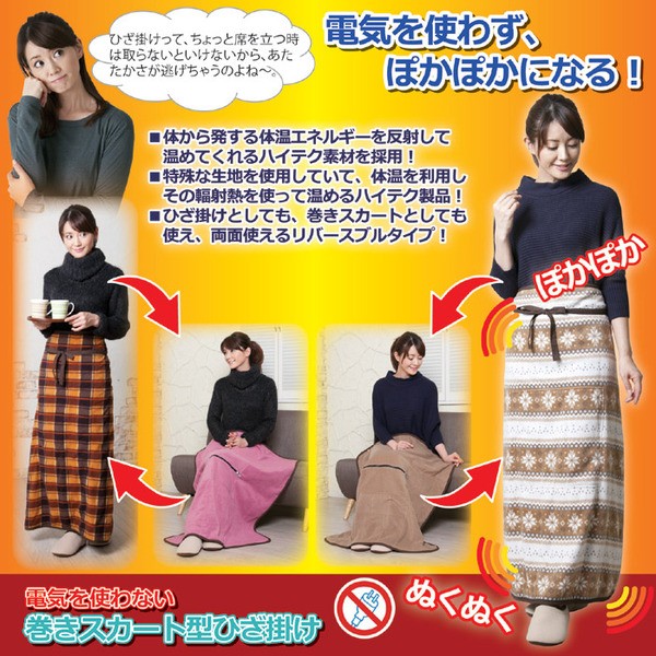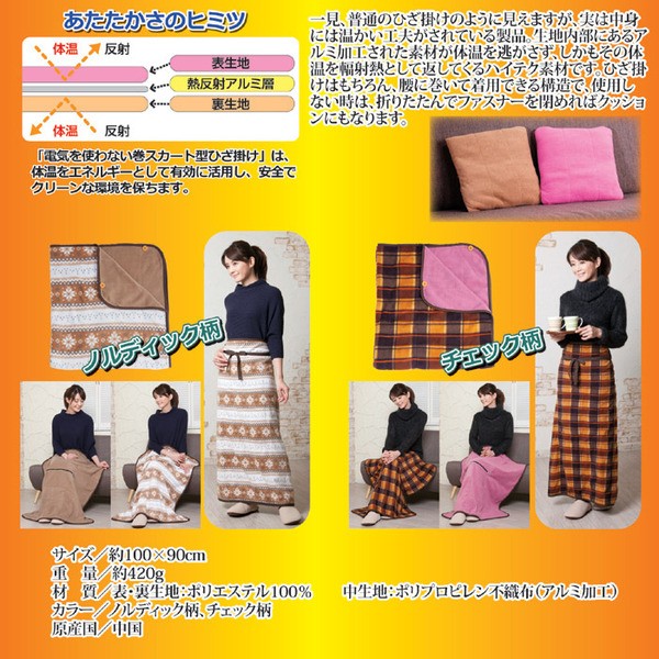 【商品名】電気を使わない 巻きスカート型ひざ掛け チェック柄