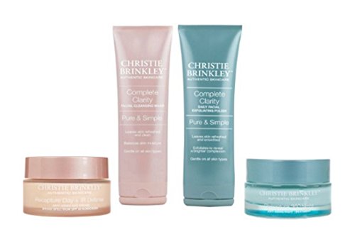 -. Binding : Misc. -. Brand : Christie Brinkley Authentic Skincare -. EAN : 0760079375934 -. Feature : 3 fl. oz. Complete Clarity Facial Cleansing Wash 3 fl. oz. Complete Clarity Daily Facial Exfoliating Polish 1 fl. oz. Recapture Day + IR Defense Cream 1 fl. oz. Recapture 360 Night Beauty Treatment / When using the Facial Exfoliating Polish, apply sunscreen before going in the sun. Reapply Recapture Day Cream at least every 2 hours to maintain sunscreen benefits. / Recapture Day + IR Defense Cream Multi-level, anti-aging skin cream Helps reduce the visible signs of aging with continued use Addresses multiple signs of aging, including wrinkles, firmness and uneven skin tone With continued use, helps firm and smooth the appearance of skin Contains broad spectrum SPF 30 sunscreen Helps prevent sunburn if used as directed with other sun protection measures / Recapture 360 Night Beauty Treatment Nighttime beauty treatment With continued use, works with your body to help skin's natural nighttime rejuvenation process of skin cell turnover With continued use, helps firm and smooth the appearance of skin Helps address the visible signs of skin aging and environmental aggressors / Complete Clarity Daily Facial Exfoliating Polish Gentle exfoliant Helps promote moisturization Removes dead skin cells Helps enhance skin cell turnover, allowing skin to be more receptive to other topical products -. IsAdultProduct : 0 -. Label : Christie Brinkley -. Manufacturer : Christie Brinkley -. MPN : 4514431 -. PackageQuantity : 1 -. PartNumber : 4514431 -. ProductGroup : Beauty -. ProductTypeName : BEAUTY -. Publisher : Christie Brinkley -. Studio : Christie Brinkley -. Title : Christie Brinkley 4-piece Skin Care Essentials Set~Cleanser,Exfoliate,Recapture Day,360 Night -. UPC : 760079375934