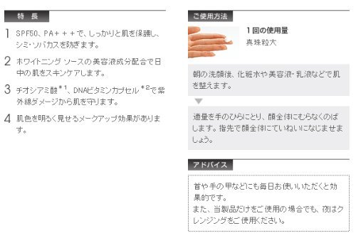 화장이 들뜨는 것 하여 어려운5종류의 자외선 흡수 제를 밸런스 잘 배합하고, 고SPF를 실현.