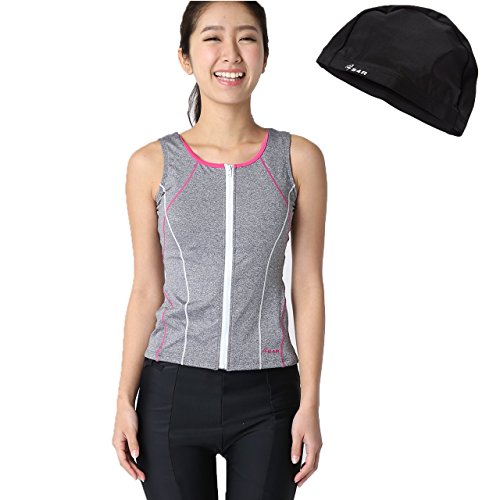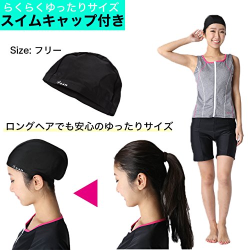 -. Feature : らくらく着脱♪ セパレート&ファスナータイプ スイムウェア / めくれ防止スナップでめくれる心配がありません♪ / 胸パッド&裏地付き インナーなしで着用できます。 / 胸パッドはずれ防止縫製の安心設計♪ もちろん交換可能♪ / 締め付けのすくない《ゆったりスイムキャップ》をおつけしています♪