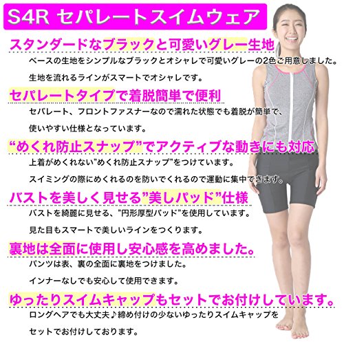 -. Title : S4R(エスフォーアール) レディース セパレートスイムウェア めくれ防止スナップ付き&パッドずれ防止の安心設計♪ 《ゆったりスイムキャップ》も付いてます