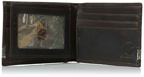 Leather wallet with cammo canvas accents and removable pass case Debossed logo at cover and interior corner Two ID windows Brand : Carhartt Item model num : 61-2240-20 MPN(PartNumber) : 61-2240-20 EAN : 0084309164342 Package Dimensions(LxWxH) : 13x13x5cm ; 249 g