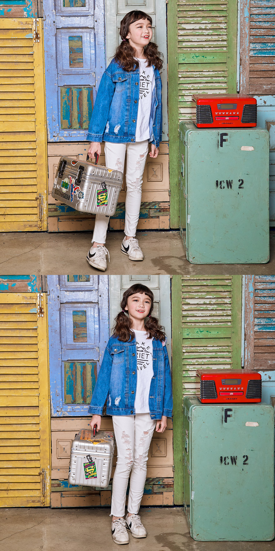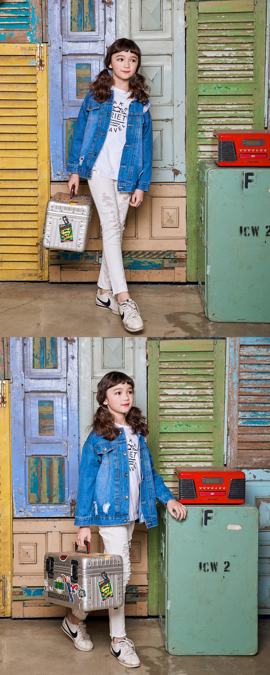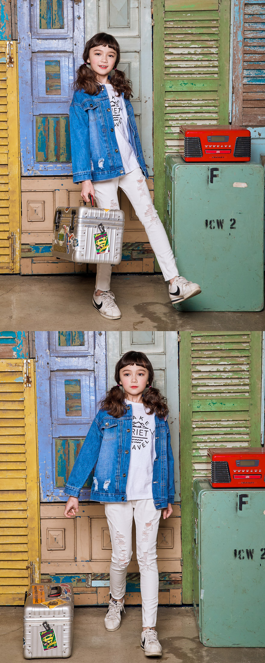 엘리는 143cm에 31kg으로 다소 마른 체격이며, 여유 있게 아이보리 13호를 착용하였고,