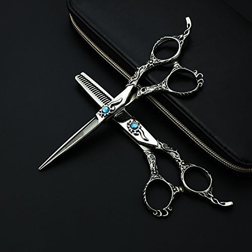 6.0'' Professional Barber Scissors High End Japanese 440C Steel Hair Cutting Scissor and Salon Thinning/Texturizing Shears Sets with Bag by Moontay (1 set)