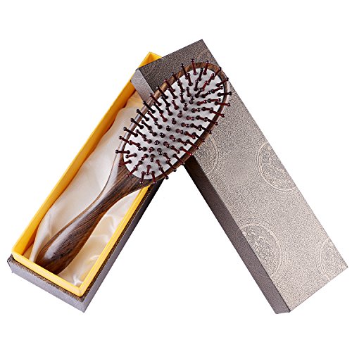 Breezelike Wooden Hair Brush with Premium Gift Box - Anti Static Handmade Big Size Chacate Preto Wood Natural Hair Detangling Brush