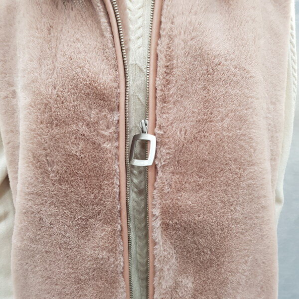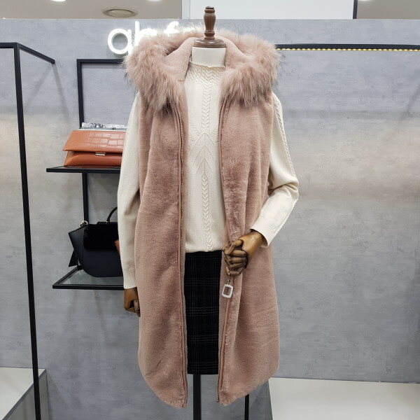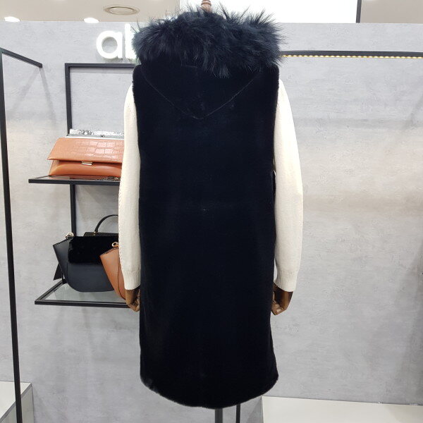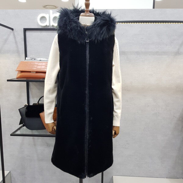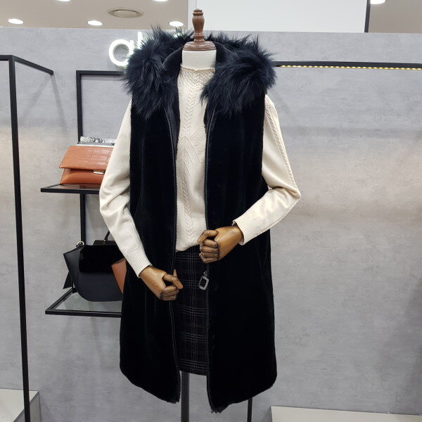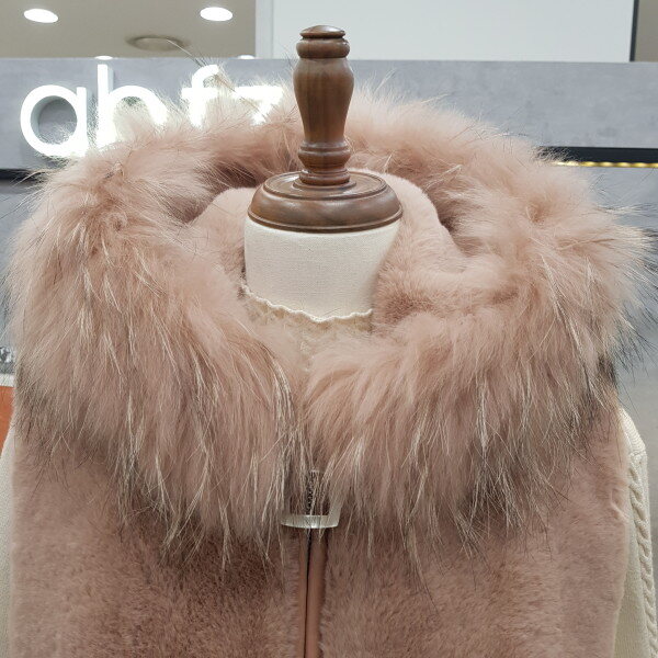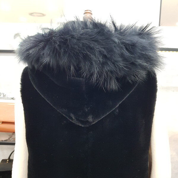 후드 천연라쿤이 멋스러운 인조 퍼 베스트입니다 다앙한 이너웨어와매칭하기좋은 아이템입니다