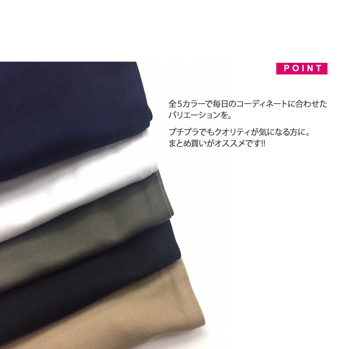 ■ ブラック、ネイビー、ベージュ、カーキ、ホワイト(全5色)