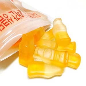 砂糖、コーンシロップ、ゼラチン、混合乳(液状果糖、脱脂粉乳、イソマルトオリゴ糖、プラクトオリゴ糖、含水結晶ブドウ糖、ホエイパウダー、乳酸菌)、植物油脂、甘味料(D-ソルビトール、ステビア)、pH調整剤、香料、ゲル化剤(ペクチン)、乳化剤(大豆由来)、着色料(パプリカ食素、カロチン色素)、原材料の一部にゼラチン、乳、大豆を含む)