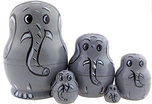 -. Feature : Traditional russian dolls:matryoshka nesting dolls / Cute Lovely animal pattern:elephant / Contains 5 dolls,stack into one another to appear as one / It's wooden and handmade,so every one is unique / Perfect for kids toy and special home decoration