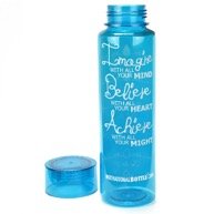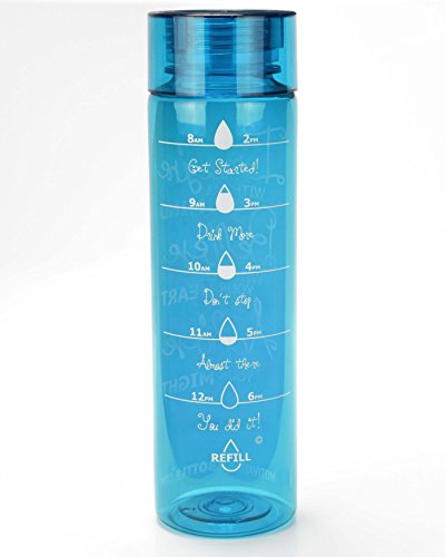 Our Twist Top Motivational Bottle® features a motivating quote and unique timeline©, measured to keep track of your daily water intake. This bottle holds 32oz of water, fits easily in the hand and is compatible with most standard cup holders. The unique design, durable construction and BPA-Free materials make this bottle perfect to take from work to the gym or even in the car. BOTTLE FEATURES: Motivational Quote Unique Timeline© BPA- Free Plastic Twist Off Lid Large Mouth Piece BOTTLE CAPACITY: 32 ounces **Please note that this bottle has a twist off lid, which means the mouth piece is a large hole**Feature