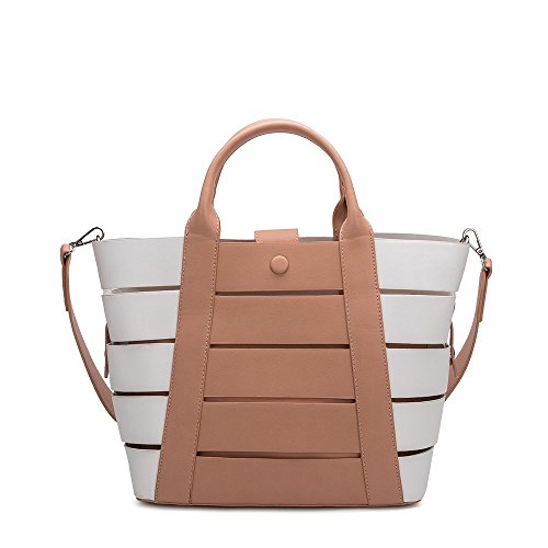 Melie Bianco Stylish Crossbody Strap Shoulder Bags For Women - Striped Tote Design - Luxury Vegan Leather (Nude)