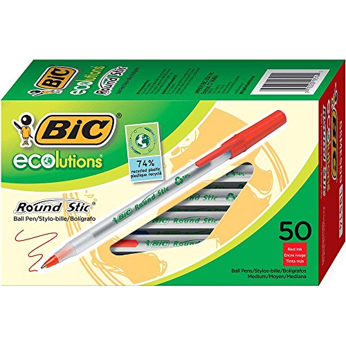BIC Ecolutions Round Stic Medium Ballpoint Pen (1.0mm) 50-Count Box, Red (GSME509-RED)