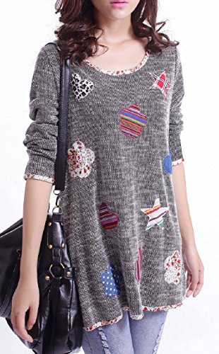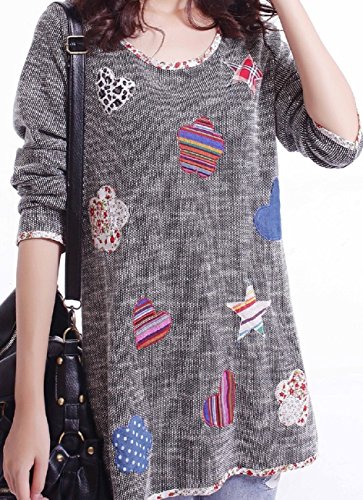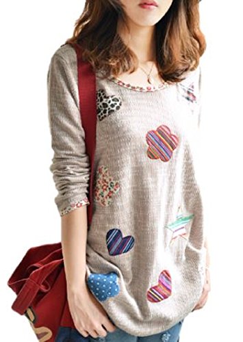-. Feature : 全体の可愛いパッチワークが目を惹くデザインのトップスは カジュアルにお役立ちの一枚。 / しっかりとした表面変化のある素材感、ラウンドネックで開き過ぎない上品なので、取り入れやすく便利な存在に。 / ラウンドネックロンTです。一枚でも、ジャケットやコートのインにも。 / カジュアルコーデに最適なアイテムです。スカートにもパンツにも。大きいサイズもあります。 / (M) 身幅:94cm 肩幅:36cm 袖丈:58cm 着丈:71cm(L) 身幅:98cm 肩幅:36.5cm 袖丈:58cm 着丈:72cm(XL) 身幅:100cm 肩幅:37cm 袖丈:58cm 着丈73cm