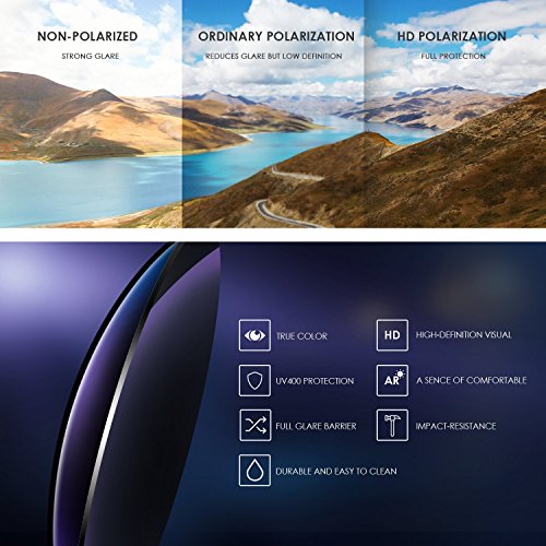 POLARIZED LENSES & UV400 PROTECTION: Polarized lenses protect your glasses from glare; UV400 protection blocks 100% of harmful UVA, UVB and UVC rays.