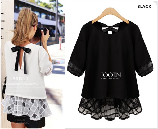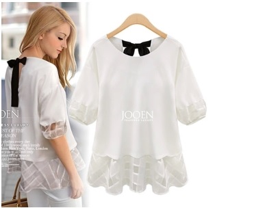 大人気のバックが可愛い♪リボンのシフォンシャツです。