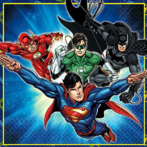 -. Title : DC Comics Justice League Superheros Birthday Party Supplies Pack Bundle for 16 Guests - Straws, Dessert Plates, Beverage Napkins, Cups, and Table Cover