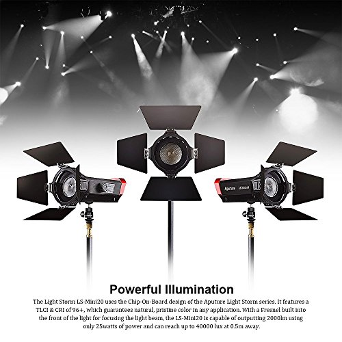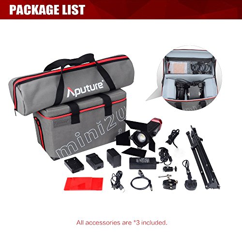 Studio : Aputure Publisher : Aputure Binding : Electronics Product Description SPECIFICATIONS: Color Temperature: 7500K±300K for LS-mini20d; 3200-5600K for LS-mini20c TLCI: LS-mini20d≥97; LS-mini20C≥96 CRI: LS-mini20d≥97; LS-mini20C≥96 Current: 4A Power supply: DC 5-18V Power consumption (MAX): 30W Cooling Mode: Active Light Size: 231*122*97mm Battery Adapter Size: 86.5*59*37.8mm Average Brightness 0.5m Spot: 3717 Footcandles 40000Lux 1m Spot: 929 Footcandles 10000Lux 2m Spot: 232 Footcandles 2500Lux 0.5m Wide: 632 Footcandles 6800Lux 1m Wide: 167 Footcandles 1800Lux 2m Wide: 42 Footcandles 450Lux PACKAGE CONTENTS: 2* LS-mini20D Light 1* LS-mini20C Light 3* NP-F970 Battery (7200mAh) 2* 5500K Filter 3* Universal cold shoe mounts 10* 3200K Filters 3* AC-DC adapters 3* Chargers 3* Crab clamps 3* Power cables 3* USB Type-A to XLR 3* D-Tap to XLR 3* Warranty card 3* light stands 3* Product manual 1* PERGEAR Cleaning Kit 0 |