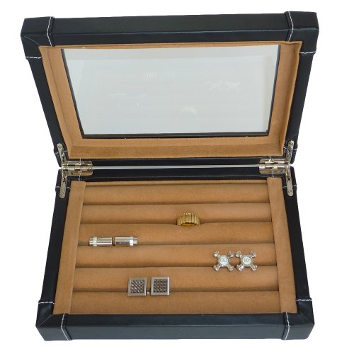 Black Leatherette Cufflink Case & Ring Storage Organizer Men's Jewelry Box for Cufflinks