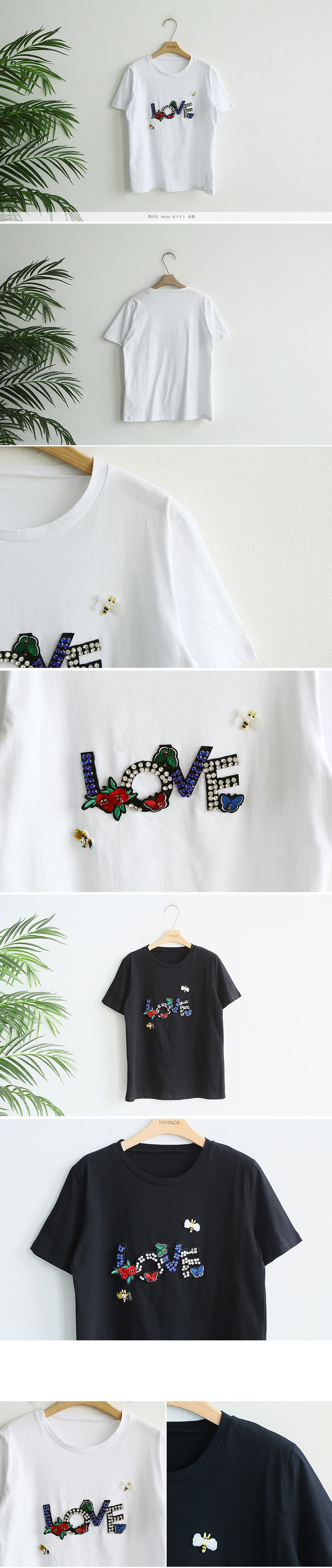 큐빅과 자수 와펜으로 입체적인 포인트를 주어 유니크함을 보여드리는 반팔티예요.