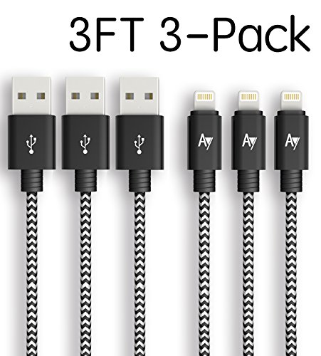 -. Title : AYIPE USB to iPhone Lightning Cable [3-Pack] - 3.3 Feet (1 Meters) - BlackWhite - Nylon Braided