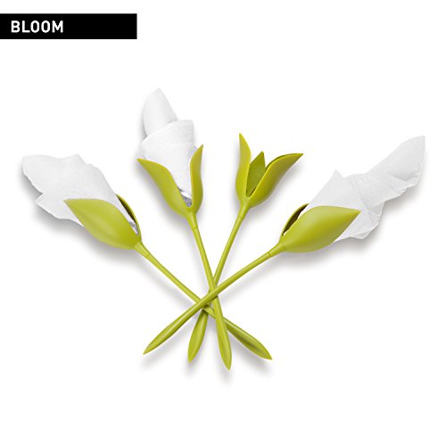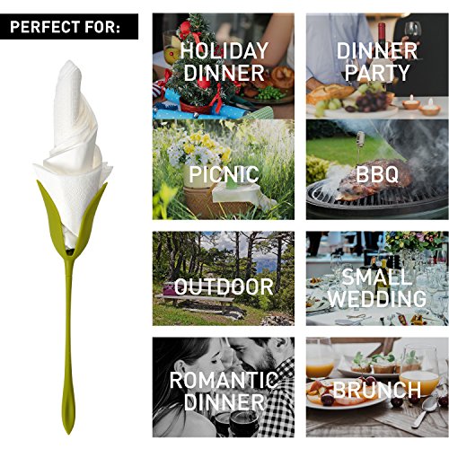 UNIQUE DESIGN? Green-stemmed flowers to hold napkins COMPLETE SET ? 4 stems included with instructions QUALITY MATERIAL ? Made of durable ABS plastic CREATIVE LOOK ? Use different colored napkins folded different ways EASY TO MAKE? Fold a napkin, place it in the slot, twist the stem, a beautiful bud is produced VERSATILE ? Great for weddings, Christmas, or dinner parties or as a housewarming gift