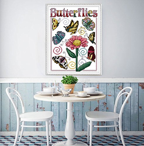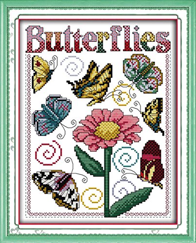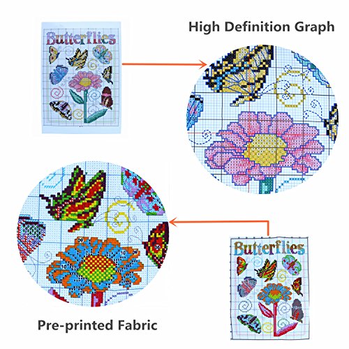 eGoodn Stamped Cross Stitch Kits With Printed Pattern - Butterflies, 12.6” x 15.4” 11CT Aida Fabric For Embroidery Art Cross-Stitching Lovers