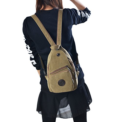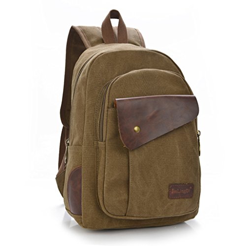 Daosen Canvas Hiking Backpack Casual Rucksack Bag Travel Day Packs Casual School Bag Coffee