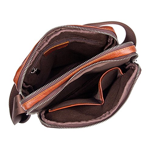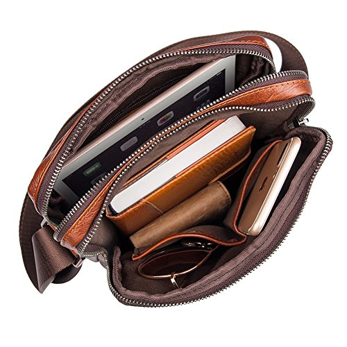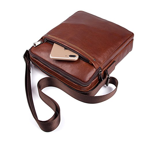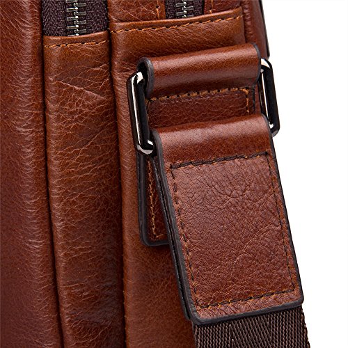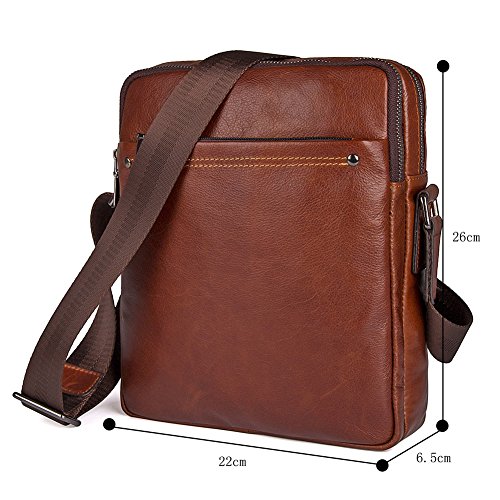 Features: Material: Genuine Leather Size: L22cm×W6.5cm×H26cm (8.7"×2.5"×10.2") Stucture: 2 zipper main pockets, 1 front multifunction pocket and 1 rear zipper pocket Usage: Shoulder crossbody bag, messenger bag, briefcase Flexible,multifunctional,convenient,durable. Used in different occasions, business, school, travel, walking on street, the best choice for hiking, cycling, shopping and so on