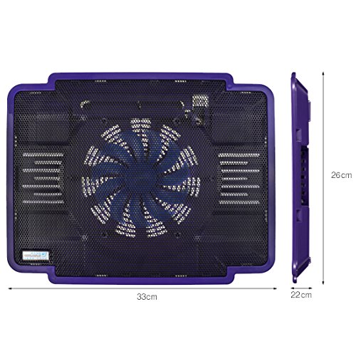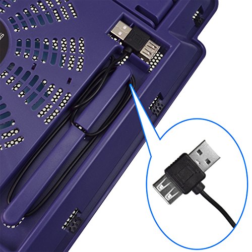 -. Feature : Ultra Slim Cooling Pad: Stylish appearance, patented product, convenient to carry with you / Cable Slot: Easy to take in cable on the back cable slot, simple and neat / Large Quiet Fan: 14cm large and quiet fan, strong wind, great heat dissipation / Mirror Surface Frame: Mirror surface frame and punching holes mesh surface, with colorful light, appealing design / Anti Slip Design: Keep your laptop stable when using, won't slip;Anti Slip Pad for Macbook: Four special design anti slip pad for Macbook, very thoughtful