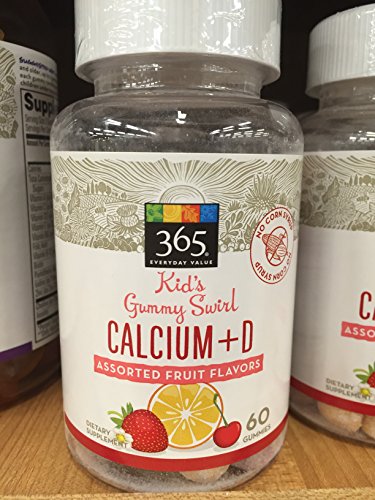 -. Feature : 365 Everyday Value Kids Gummy Swirls Calcium + D (60 Gummies) / Assorted Fruit Flavors / No Corn Syrup / Dietary Supplement