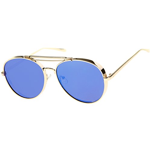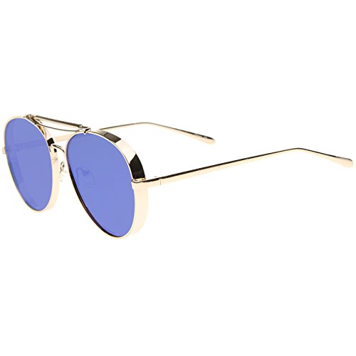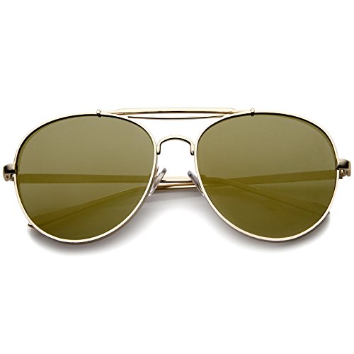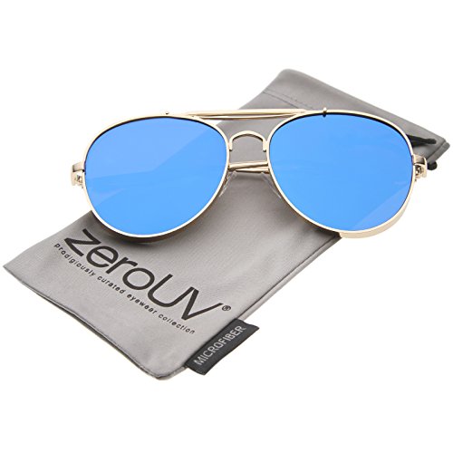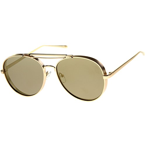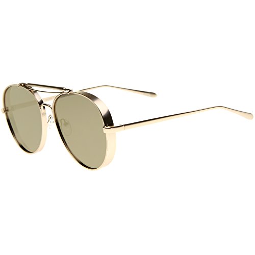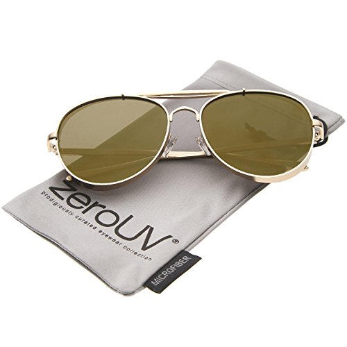 -. Title : zeroUV - Bold Metal Full Metal Side Cover Frame Crossbar Mirrored Flat Lens Aviator Sunglasses