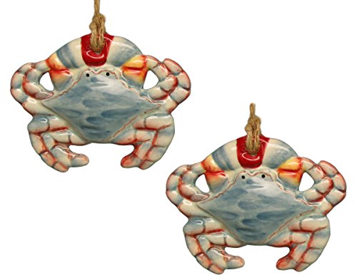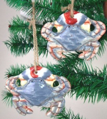 Coastal Maryland Blue Crab Ceramic Christmas Holiday Ornament Set of 2