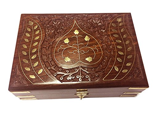 Valentine Day Special Present, Wooden Jewelry Box, Leaf Design Carving Inlay Storage Box, Vintage Box, Storage Box, Jewelry Box Organizer, Jewelry Trinket Box, Brown Color Size 7 X 5 Inch.
