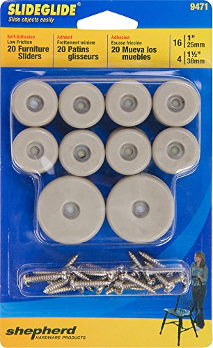 -. Title : Shepherd Hardware 9471 1-Inch and 1-1/2-Inch Round, Adhesive Slide Glide Furniture Sliders, 20-Count