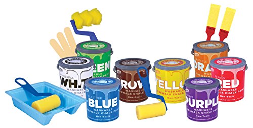 It's a kaleidoscope of creativity! With the Washable Sidewalk Chalk Paint Super Set that includes 8 amazing colors, you can colorfully take your imagination outdoors. Paint flower beds with an assortment of colors. Paint fun rainbows, leave bright messages for your friends, and a whole lot more! Take your imagination outdoors and let it run wild for hours on end. Just add water to the powder, stir it up, then paint your heart out! Every sidewalk is your canvas-with Washable Sidewalk Chalk Paint! Non-toxic. Washes away with plain water.Feature