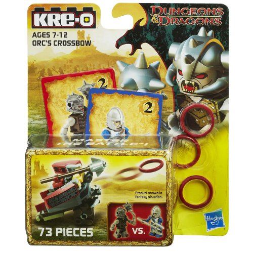 -. Binding : Toy -. Brand : KRE-O -. EAN : 0653569938613 -. Feature : This 73-piece set lets you build a firing Orc's Crossbow / Pit your Knight Pikesman Kreon and his pike against your Orc with Mace Kreon / Crossbow fires discs and a missile at your target / Knock either Kreon off the battle tower / Set includes 73 pieces and instructions -. Label : Hasbro -. LegalDisclaimer : WARNING: CHOKING HAZARD - small parts. Not for children under 3 years. -. Manufacturer : Hasbro -. Model : A7705000 -. MPN : 653569938613 -. PackageQuantity : 1 -. PartNumber : 653569938613 -. ProductGroup : Toy -. ProductTypeName : TOYS_AND_GAMES -. Publisher : Hasbro -. Studio : Hasbro -. Title : KRE-O Dungeons & Dragons Orc's Crossbow Set (A7705) -. UPC : 653569938613 -. Warranty : No Warranty