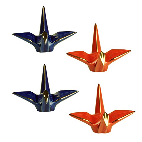 Cinf Japanese Cranes Ceramics Chopstick Rest Spoon Fork Knife Holder with Gold Edge Set of 4(Red/Blue)
